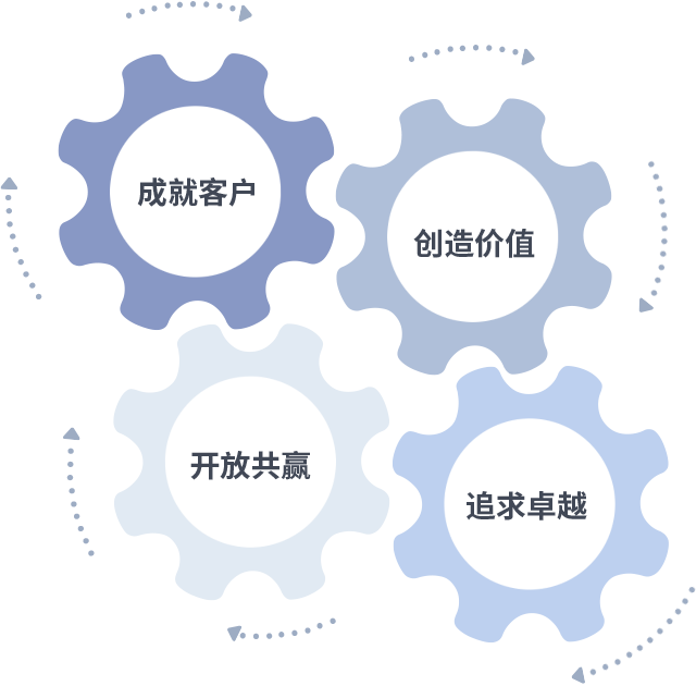 成就客户是一切决策的出发点,创造价值是衡量所有工作的标准,追求卓越是门徒平台做事做人的态度,开放共赢是门徒平台的格局也是最终的结果。价值观的齿轮环环相扣,推动着组织里的每个人不断向前。